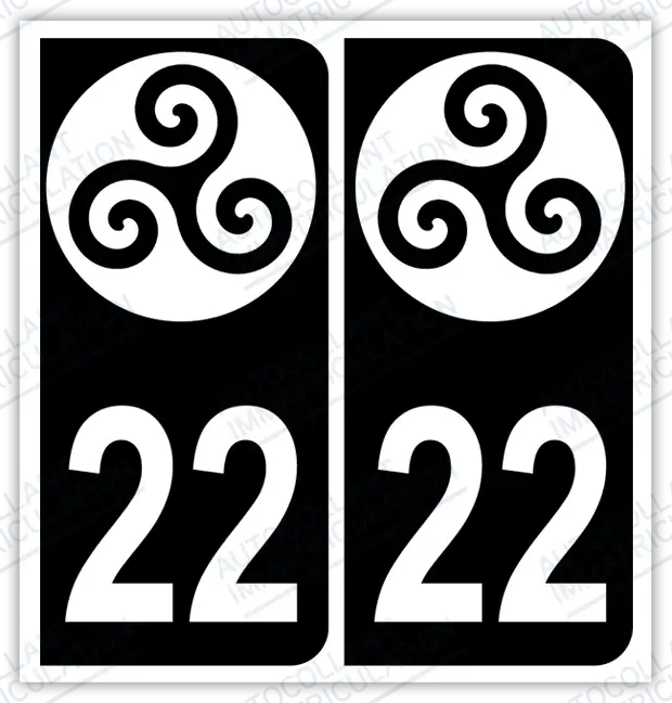 Sticker immatriculation Auto 22 Triskell : l'identité bretonne sur vos plaques